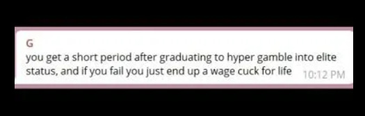 it is the author’s belief that if Unversal Basic Income is ever implemented, it will accelerate long degeneracy to new levels. live life as a stipend peon, or swing for elite status. after all, if you can simply try again next month, what’s the downside of speculating with this month’s check?