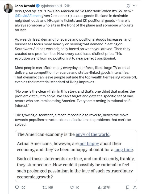 I doubt Warsh would prescribe long degeneracy as the way out of the situation, and if anything I think it’s more likely that he crashes everything to give a clean slate. I’m also skeptical that any sort of redistributive policies could get us out of the harmful, degenerate spiral. As the Man in the Arena from the long degeneracy post says: