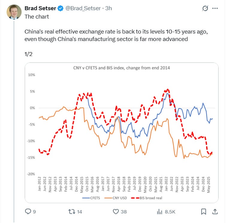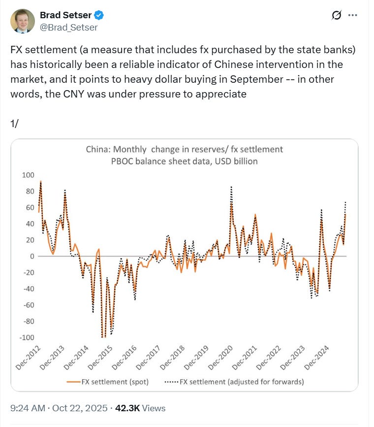 And it’s not really just Tweets where this applies. Take this Brad Setser post about Chinese exchange rate management.