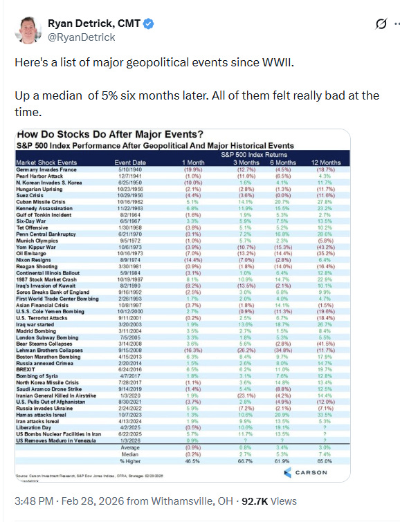 Sure, if you bought the dip of the Polish stock market when the Nazis and Soviets invaded you’d lose all your money so would have been wise to geopolitically panic, but most of these time these are events to look through, not react to.